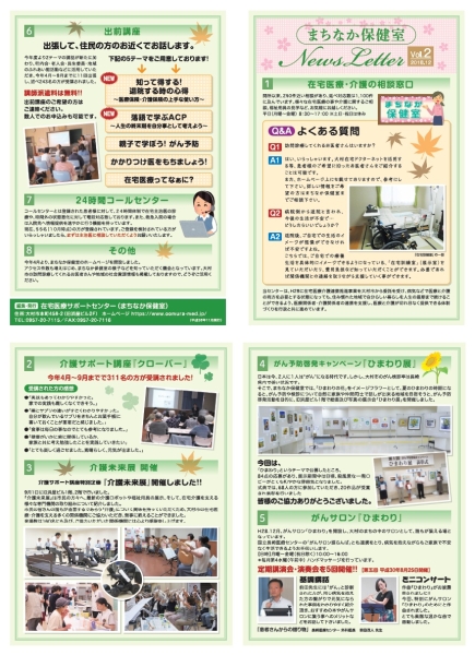 まちなか保健室の今年度のニュースレターを発行しました。一年間の講座予定や、活動内容をお知らせします。ぜひ、ご覧ください。